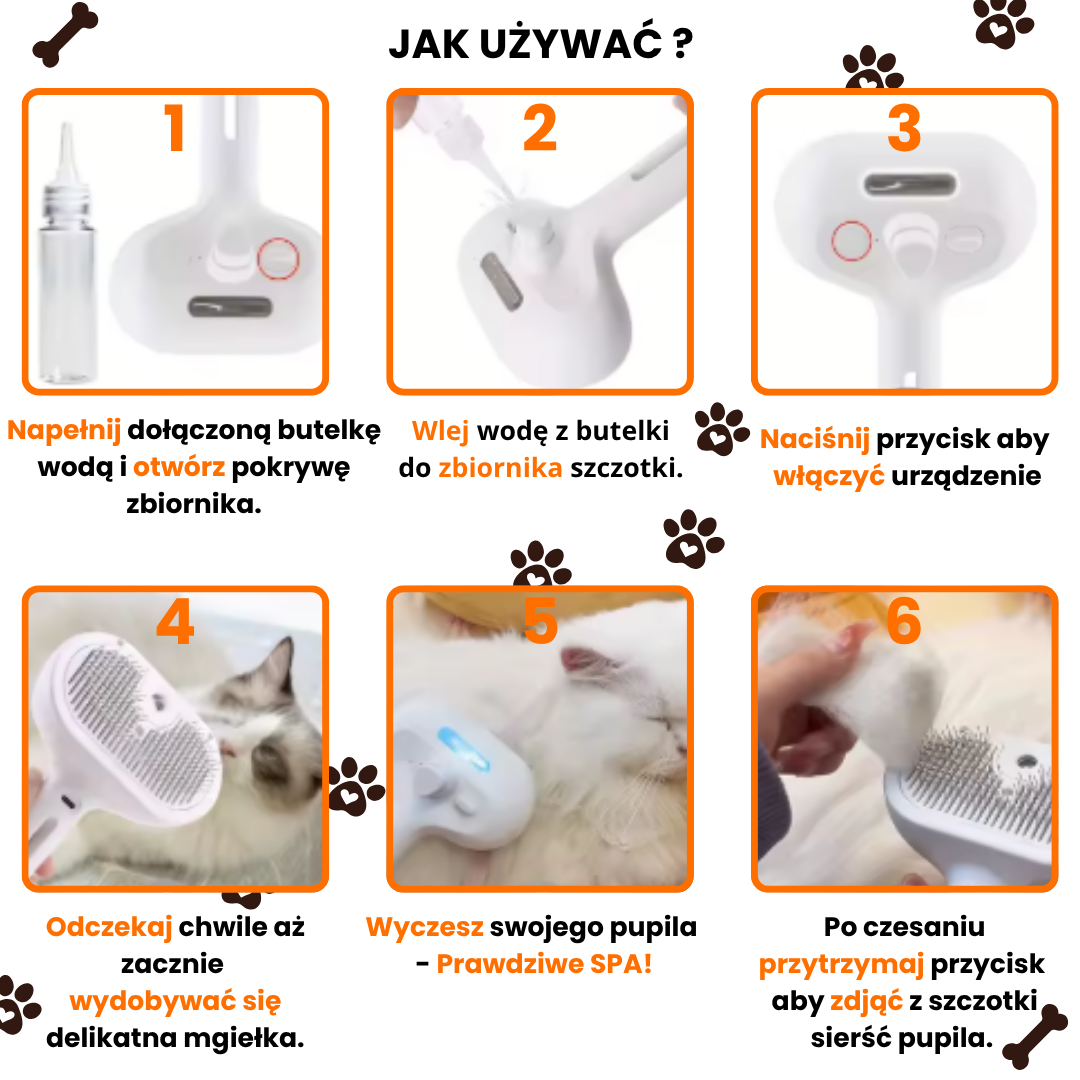 Delikatnie rozczesuj sierść swojego pupila – para ułatwia rozplątywanie i nadaje połysk. -